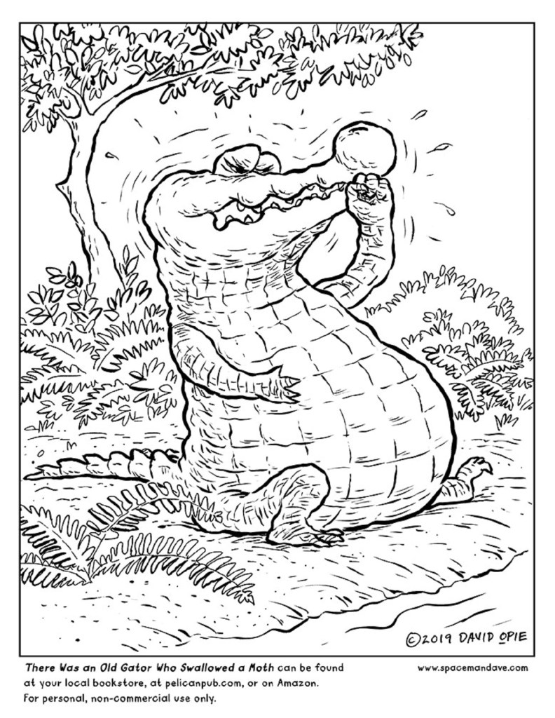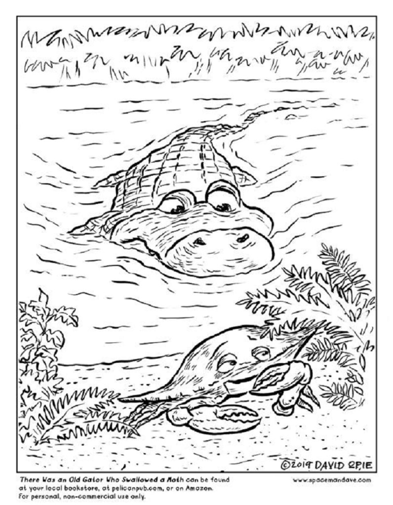 swallows a moth. Of course, he swallows a crab to get the moth! What will he swallow next? The gator